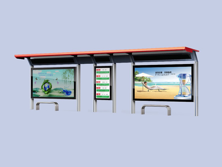 公交車候車亭一般是與公交站牌相配套的,為方便公交乘客候車時(shí)遮陽(yáng)、防雨等,在車站、道路兩旁或綠化帶的港灣式公交?空旧辖ㄔO(shè)的交通設(shè)施。由于城市公交的日益發(fā)達(dá),候車亭已發(fā)展成為城市一個(gè)不可或缺的重要組成部分,設(shè)計(jì)精美的候車亭也成為了城市一道美麗的風(fēng)景。 一般候車亭棚體主要頂棚、立柱、頂弓、廣告燈箱和坐凳組成,也有用隔板來(lái)代替廣告燈箱的。