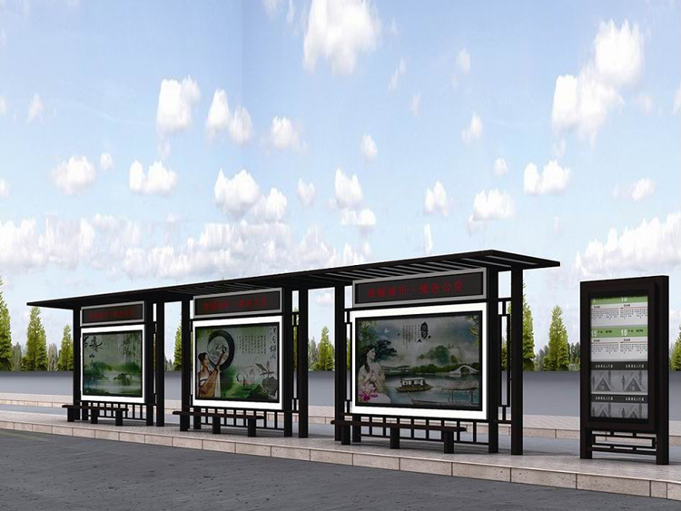 公交車候車亭一般是與公交站牌相配套的,為方便公交乘客候車時遮陽、防雨等,在車站、道路兩旁或綠化帶的港灣式公交?空旧辖ㄔO(shè)的交通設(shè)施。由于城市公交的日益發(fā)達,候車亭已發(fā)展成為城市一個不可或缺的重要組成部分,設(shè)計精美的候車亭也成為了城市一道美麗的風(fēng)景。 一般候車亭棚體主要頂棚、立柱、頂弓、廣告燈箱和坐凳組成,也有用隔板來代替廣告燈箱的。