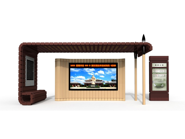 公交車候車亭一般是與公交站牌相配套的,為方便公交乘客候車時(shí)遮陽(yáng)、防雨等,在車站、道路兩旁或綠化帶的港灣式公交?空旧辖ㄔO(shè)的交通設(shè)施。由于城市公交的日益發(fā)達(dá),候車亭已發(fā)展成為城市一個(gè)不可或缺的重要組成部分,設(shè)計(jì)精美的候車亭也成為了城市一道美麗的風(fēng)景。 一般候車亭棚體主要頂棚、立柱、頂弓、廣告燈箱和坐凳組成,也有用隔板來(lái)代替廣告燈箱的。