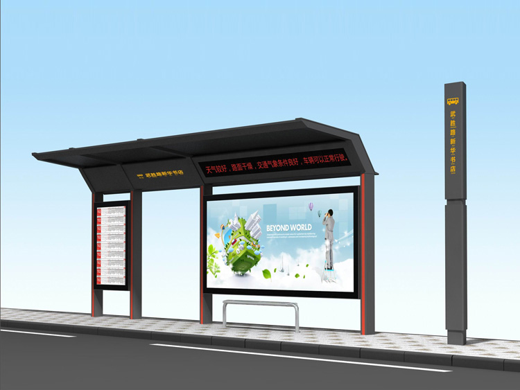 公交車候車亭一般是與公交站牌相配套的,為方便公交乘客候車時(shí)遮陽、防雨等,在車站、道路兩旁或綠化帶的港灣式公交停靠站上建設(shè)的交通設(shè)施。由于城市公交的日益發(fā)達(dá),候車亭已發(fā)展成為城市一個(gè)不可或缺的重要組成部分,設(shè)計(jì)精美的候車亭也成為了城市一道美麗的風(fēng)景。 一般候車亭棚體主要頂棚、立柱、頂弓、廣告燈箱和坐凳組成,也有用隔板來代替廣告燈箱的。