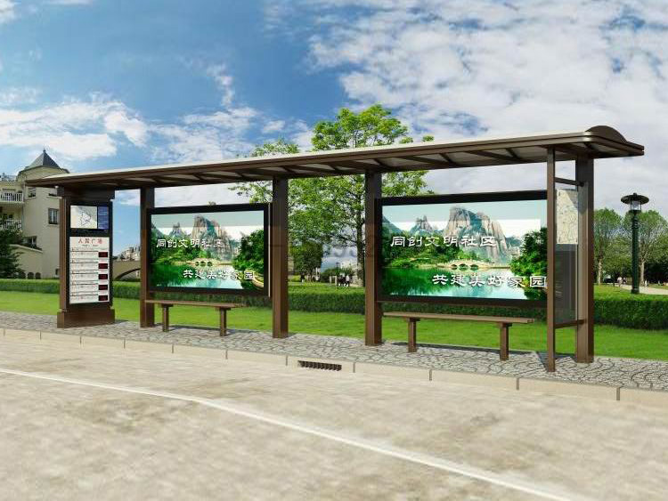 公交車候車亭一般是與公交站牌相配套的,為方便公交乘客候車時遮陽、防雨等,在車站、道路兩旁或綠化帶的港灣式公交?空旧辖ㄔO(shè)的交通設(shè)施。由于城市公交的日益發(fā)達(dá),候車亭已發(fā)展成為城市一個不可或缺的重要組成部分,設(shè)計精美的候車亭也成為了城市一道美麗的風(fēng)景。 一般候車亭棚體主要頂棚、立柱、頂弓、廣告燈箱和坐凳組成,也有用隔板來代替廣告燈箱的。